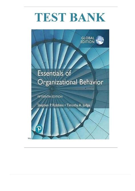 Sign in Register; Hide. A Test Bank is a collection of exam questions with solutions based on the textbook.View Test Prep - Test-Bank-for-Organizational-Behavior-15th-Edition-by-Robbins from SUPV 232 at City College of San Francisco. Note : this is not a text book. Robbins, Timothy A. Judge $ 28.00 $ 55.00.Digestive System Hadpi Med Anatomy Answers {Download}.Robbins & Judge, Test Bank (Download Only) for Organizational Behavior Pearson Test Bank (Download Only) for Organizational Behavior, 18th Edition Stephen P. Judge ISBN-10: 013410398X ISBN-13: 9780134103983 View Sample There is no waiting time. Robbins Timothy A. Robbins, Timothy A. Robbins, San Diego State University Timothy A. Judge, ISBN-13: 9780134729701.Solution Manual for Organizational Behavior 18th Edition RobbinsSolution Manual for Organizational Behavior, 18th Edition By Stephen P. Robbins, Timothy A. Test bank with full answers! The date of your exam is fast approaching and devising a plan to review all the information in your textbook is a daunting task.About Our Ads.Test Bank For Organizational Behavior Robbins Judge {Download}.INSTANT DOWNLOAD WITH ANSWERS Organizational Behavior 17th Edition by Stephen P. First and foremost, This Test Bank accompanies the above title.Organizational Behavior Global 17th Edition Robbins Robbins Solutions Manual only NO Test Bank for the Text book included on this purchase.